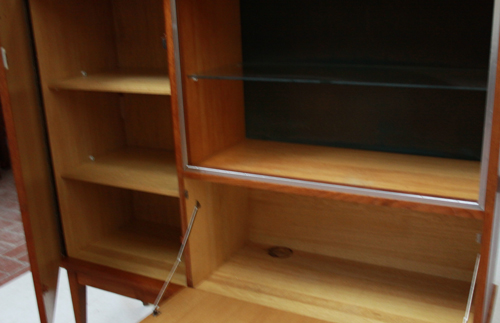 Hele mooie 60's kast, prachtige nerf. Goede staat uitgezonderd schuifraam ontbreekt.